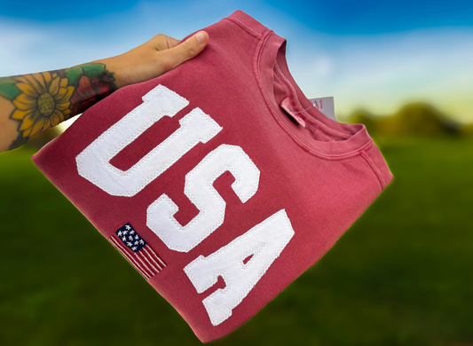 Proud of Our Roots USA Crewneck – Handmade Patriotic Sweatshirt