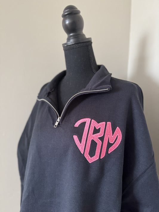 Monogramed Heart Quarter-Zip Sweatshirt